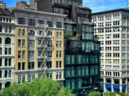 15 Union Square West transforms the historic 1870 Tiffany & Co. headquarters into a boutique condominium overlooking Union Square Park. The original cast-iron arched windows by John Kellum were meticulously restored and framed within a striking new glass and black zinc façade by ODA, blending heritage with modernity. Residences feature soaring ceilings and refined interiors by Vicente Wolf. Amenities include a full-service concierge, fitness center, spa with pool, and rooftop terrace, offering a seamless blend of history and modern luxury living.