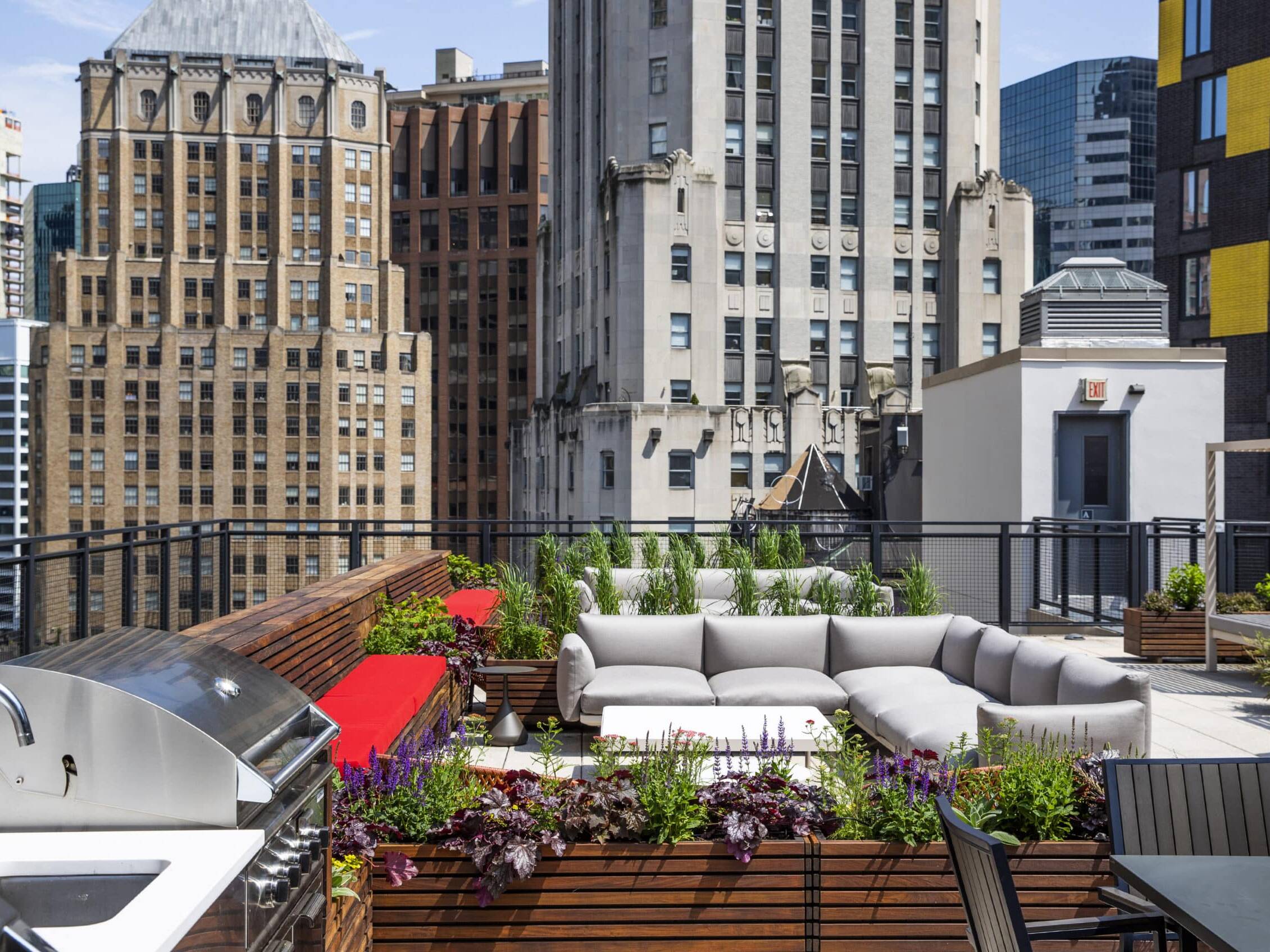 • 8,000 square feet of amenities including rooftop terraces and lounges.